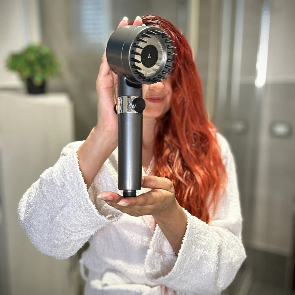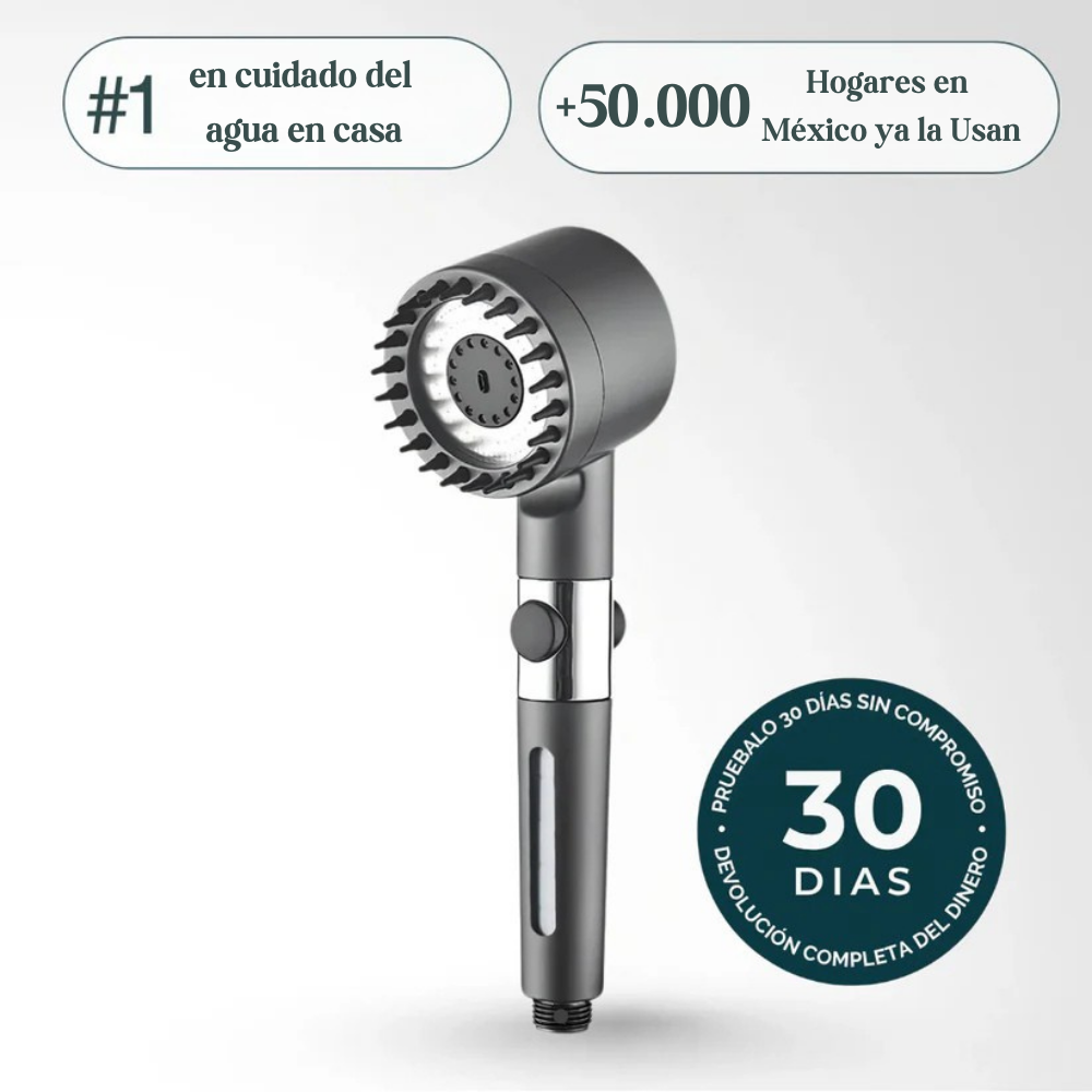 AquaPura™ incorpora un sistema de filtración avanzada que ayuda a reducir cloro, sarro e impurezas antes de que toquen tu piel.