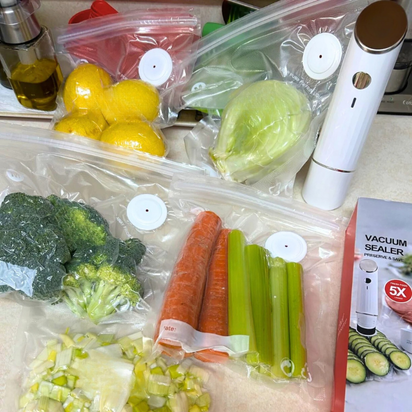 Cuando vi un sellador al vacío portátil, me animé de inmediato. ¡Ahora sello mi pescado en segundos! Amo que las bolsas sean resellables: saco la mitad y vuelvo a sellar el resto. En serio, me cambió la rutina.